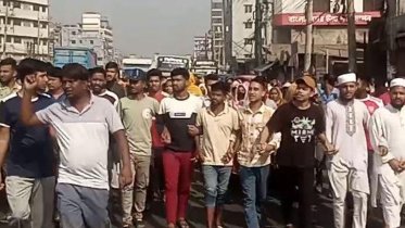 ঢাকা-ময়মনসিংহ মহাসড়কের গাজীপুরের বোর্ডবাজার এলাকায় একটি সোয়েটার কারখানার শ্রমিকেরা দুই মাসের বকেয়া বেতনের দাবিতে বিক্ষোভ মিছিল করেছেন।